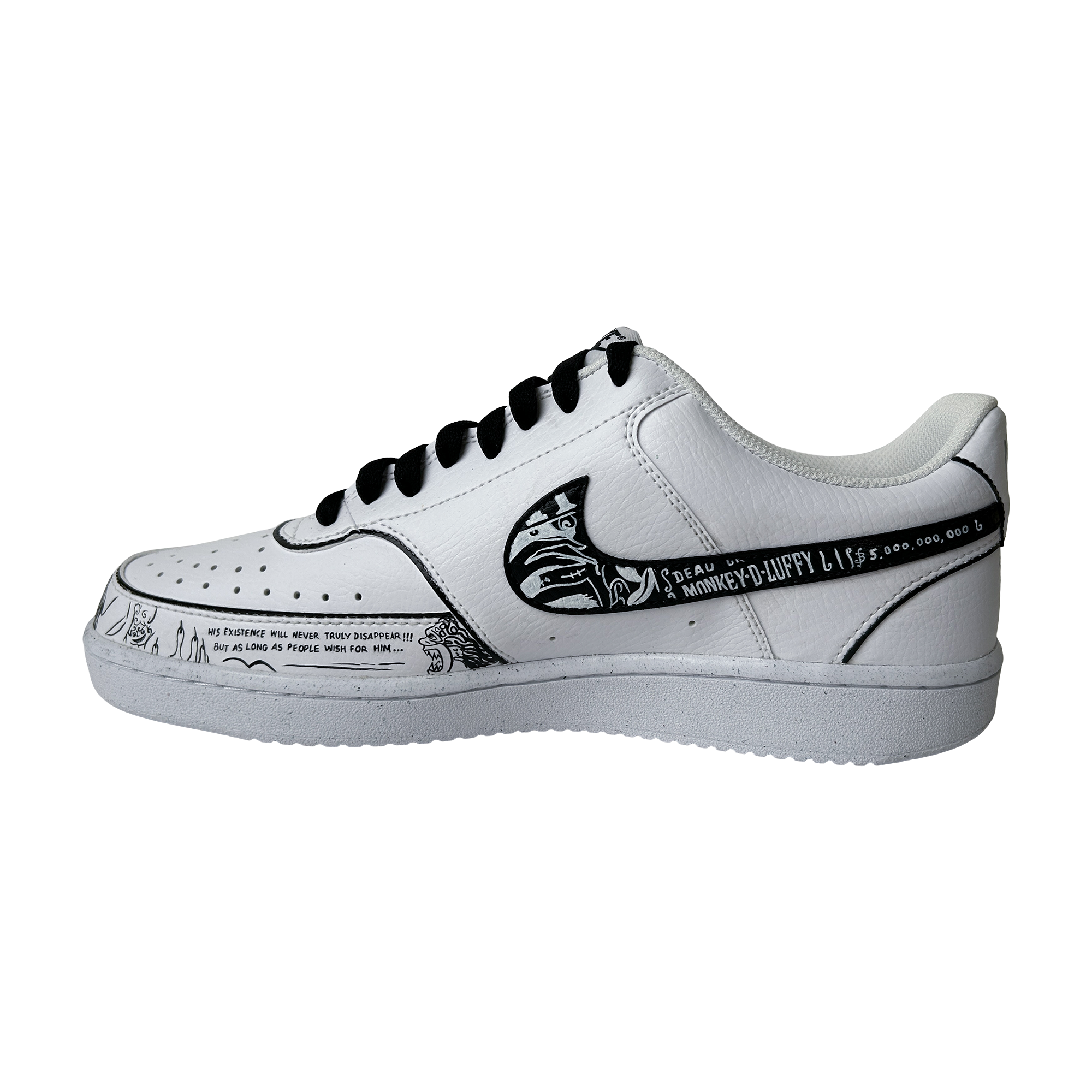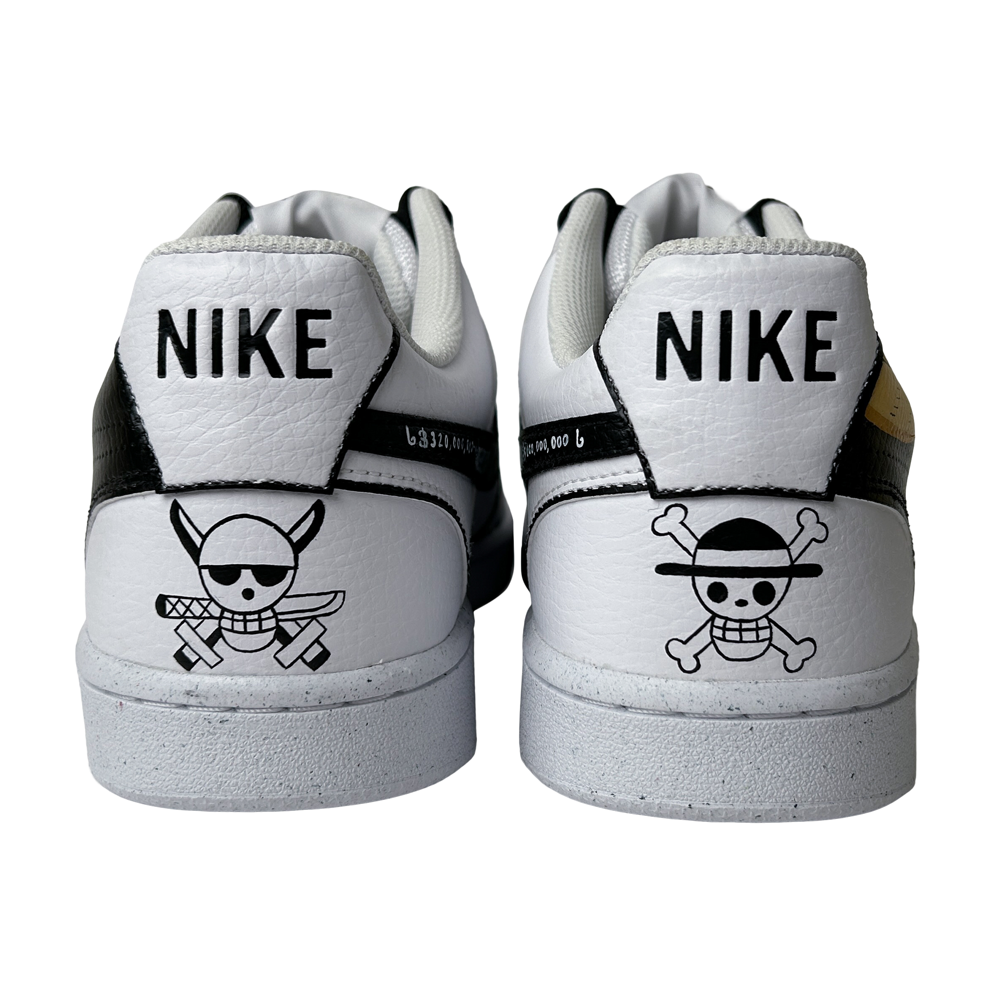 The Nike swoosh is transformed with custom One Piece artwork and Luffy’s bounty details.