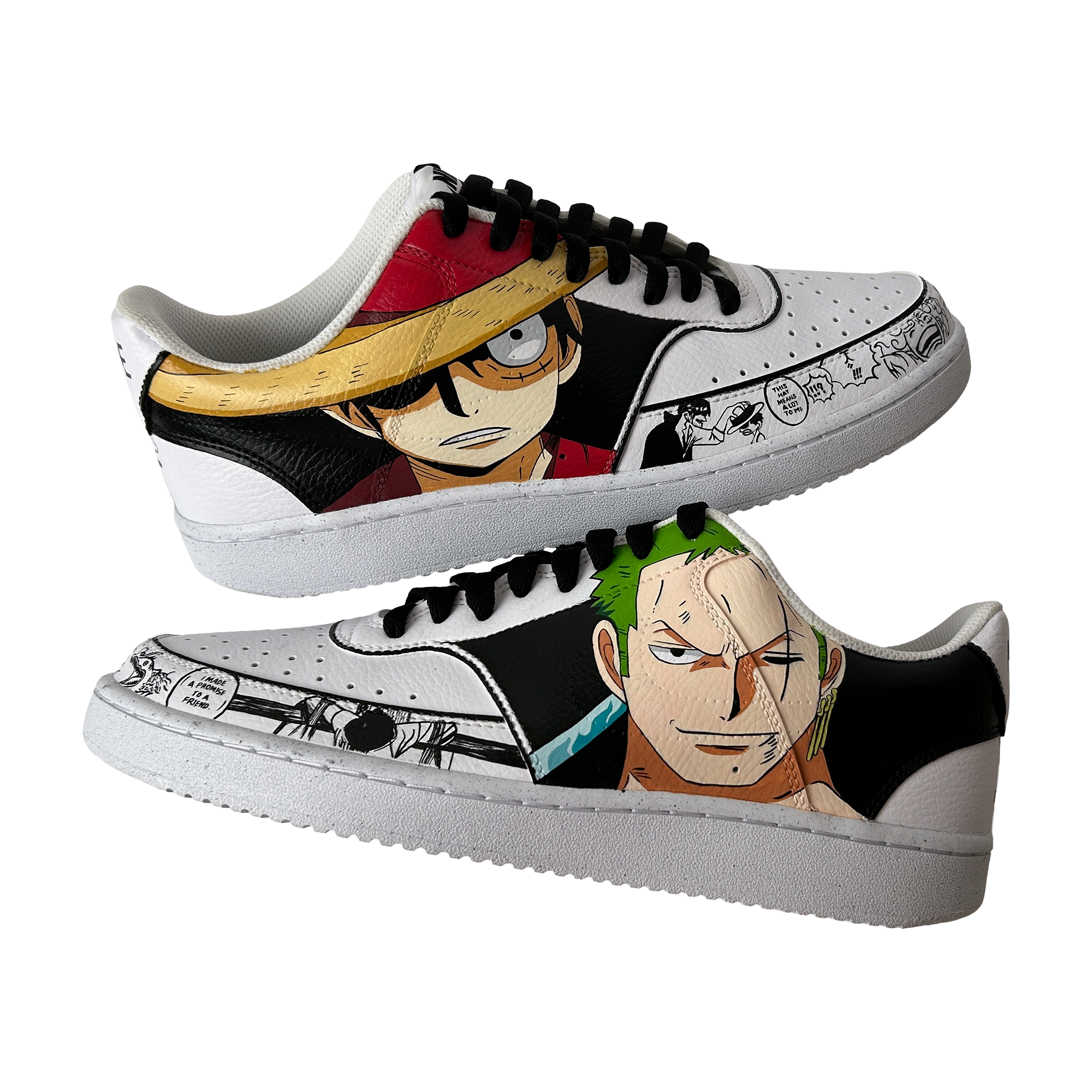 Step into the Grand Line with our exclusive One Piece custom sneakers, hand-painted with incredible detail and passion. Each pair is a wearable work of art, bringing your favorite Straw Hat Pirates to life.