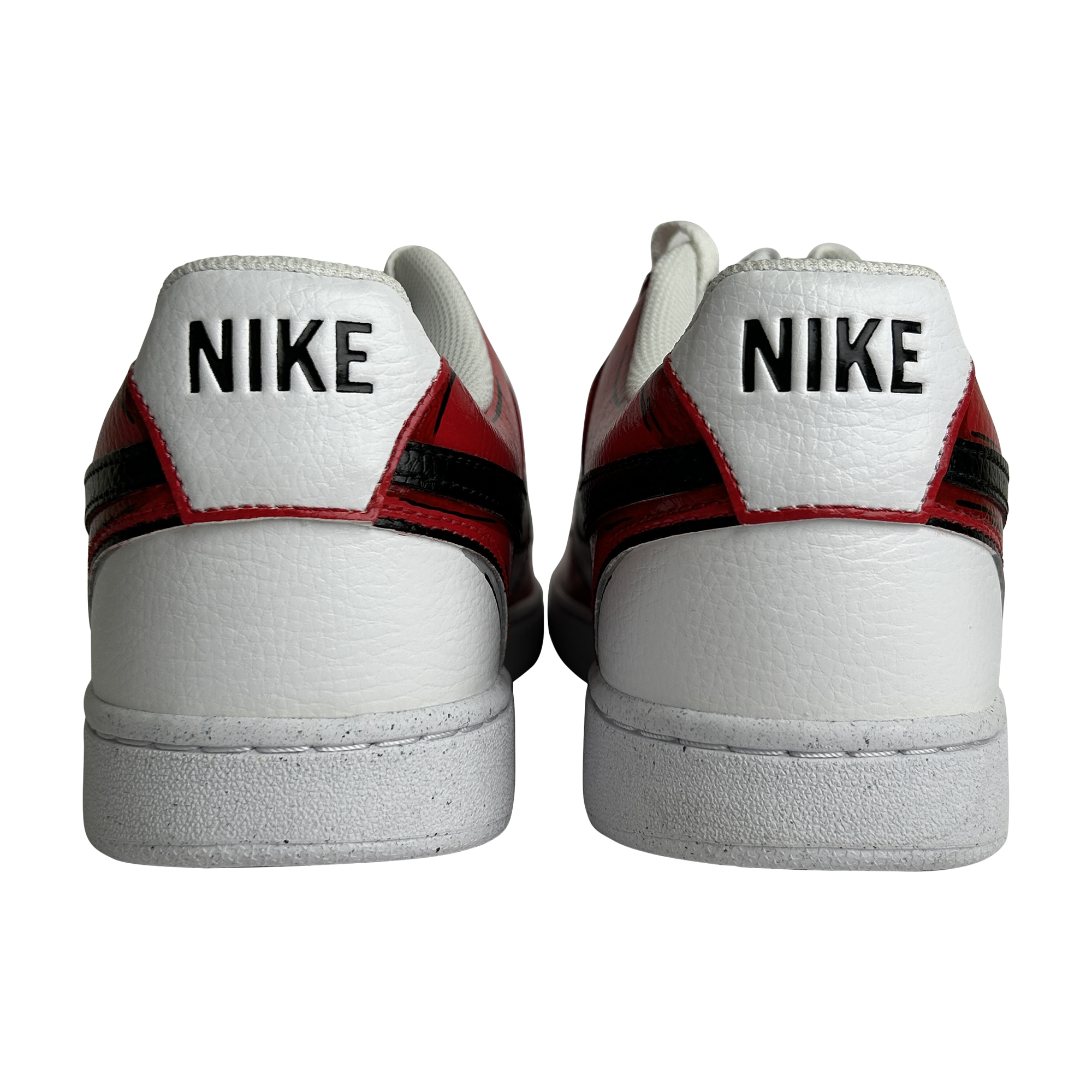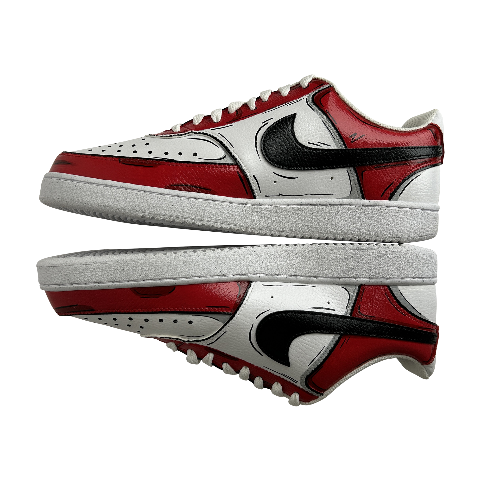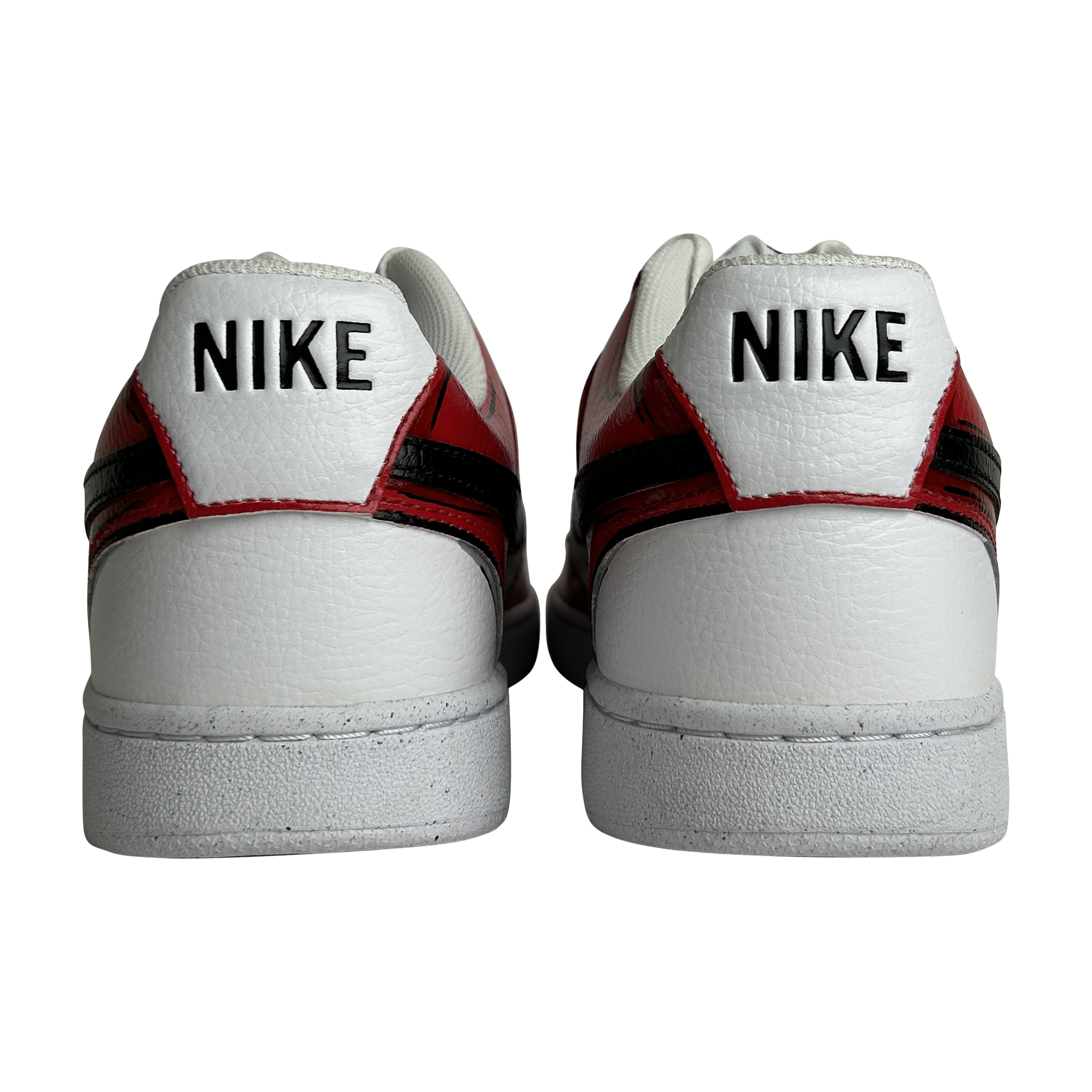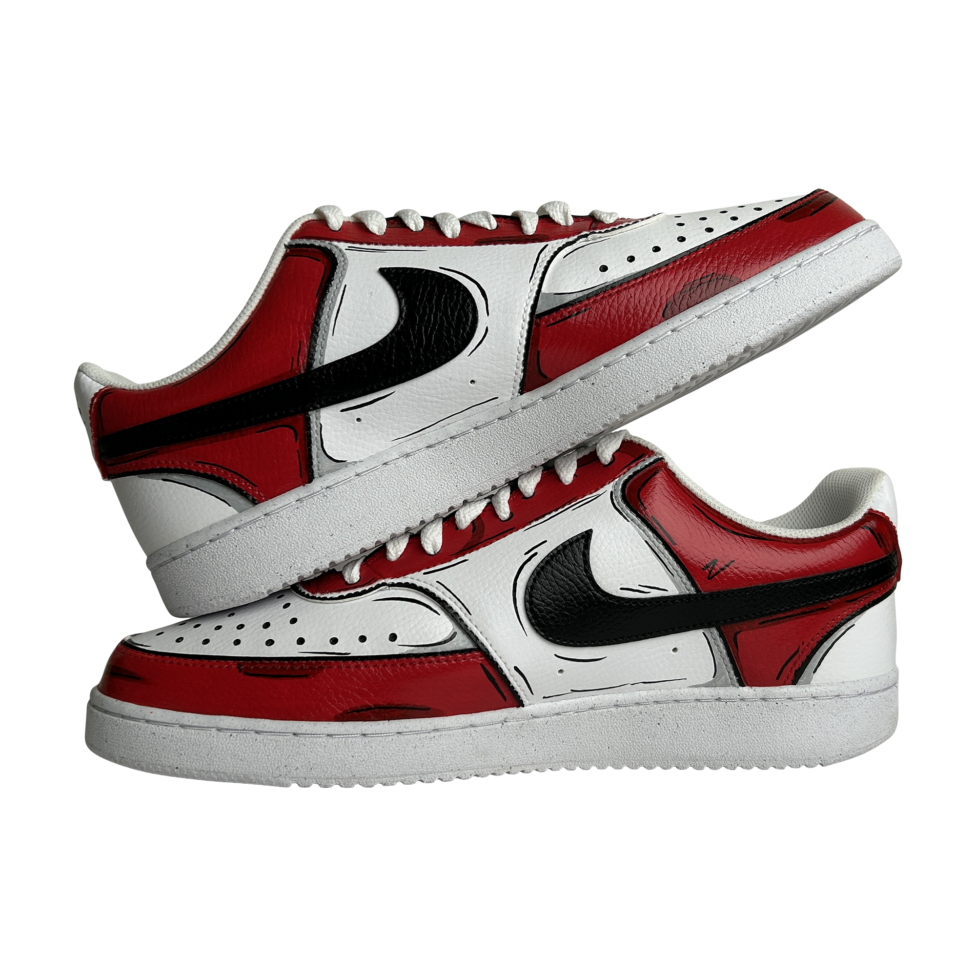 The design features a bold red-and-white base with striking black accents, highlighted by a hand-painted spider emblem across the swoosh – a nod to Spidey’s iconic suit. Each pair is finished with durable waterproof paint, ensuring the artwork stays as powerful as the hero himself.