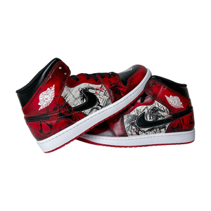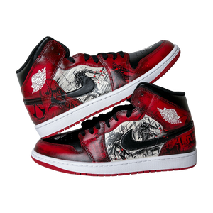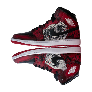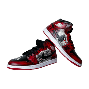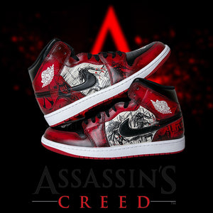 These hand-painted Assassin’s Creed are more than sneakers—they’re a chapter of the Brotherhood stitched into every panel. The deep crimson bleeds across the shoe like the shadows of a hidden blade, fading into midnight black that guards the secrets of the Creed.