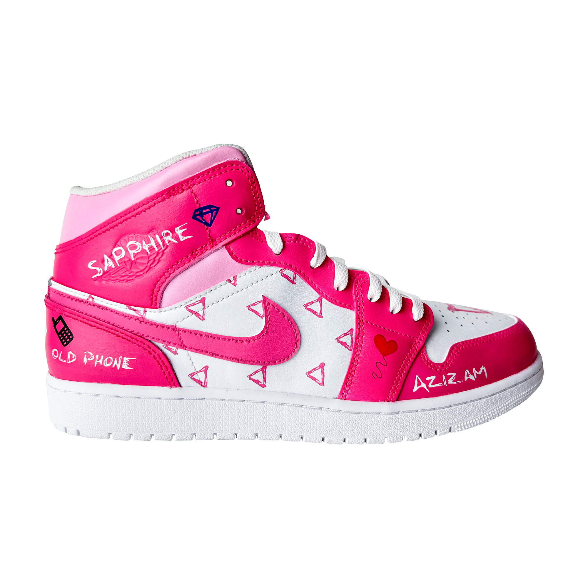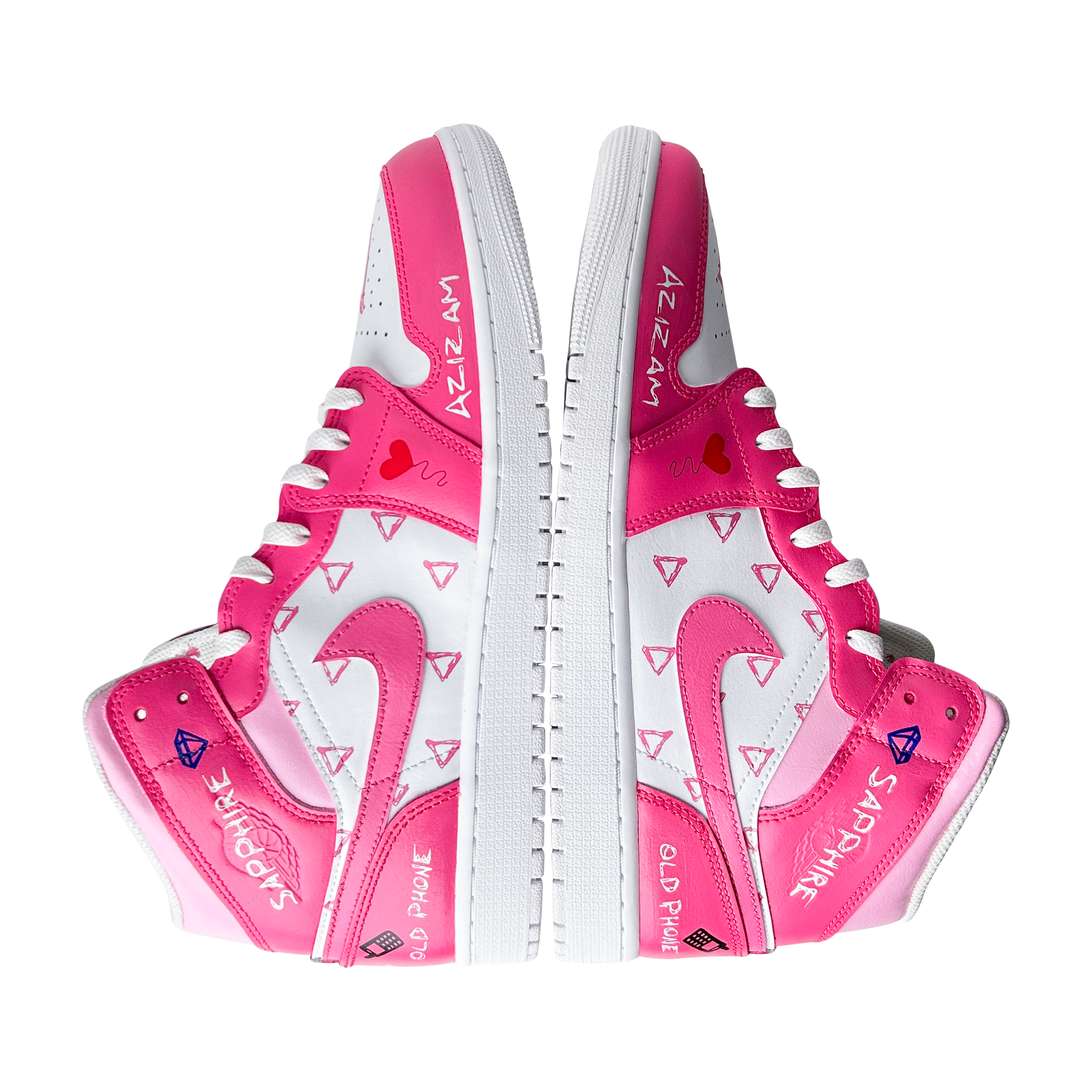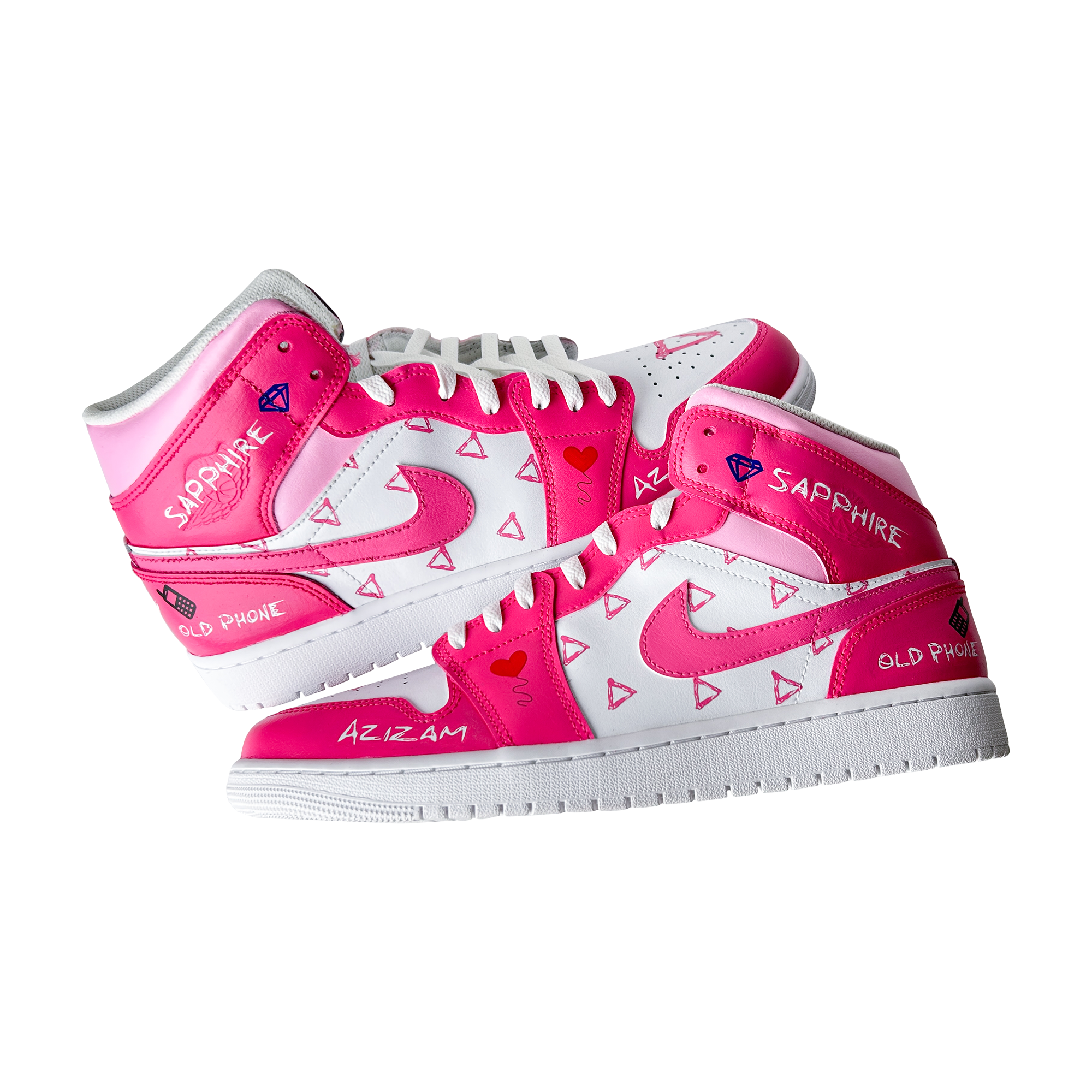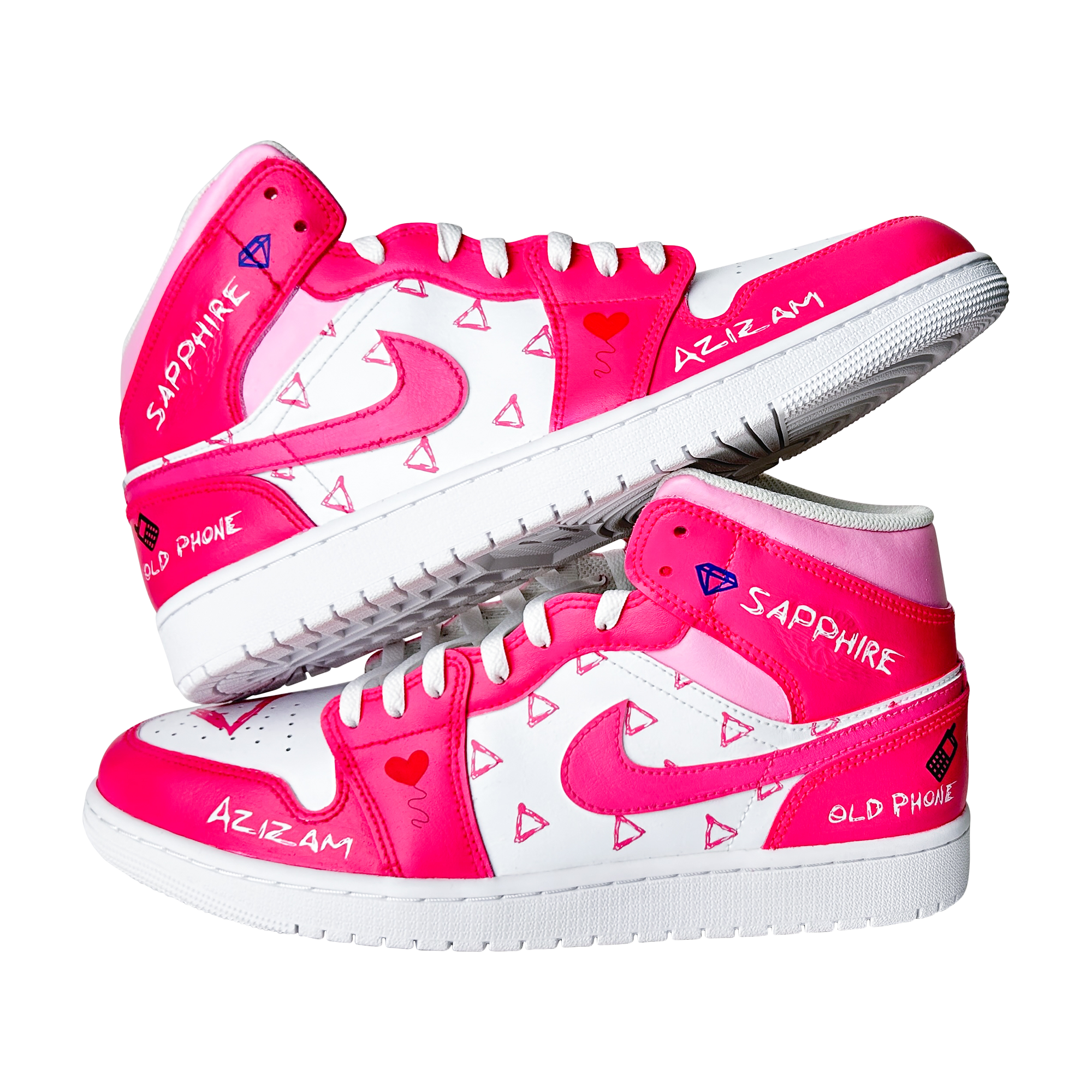 Painted in electric pinks and soft pastels, every detail hums with energy — the handwritten hearts, “old phone” doodles, and Sapphire diamond sketches echoing Ed’s playful yet emotional storytelling.