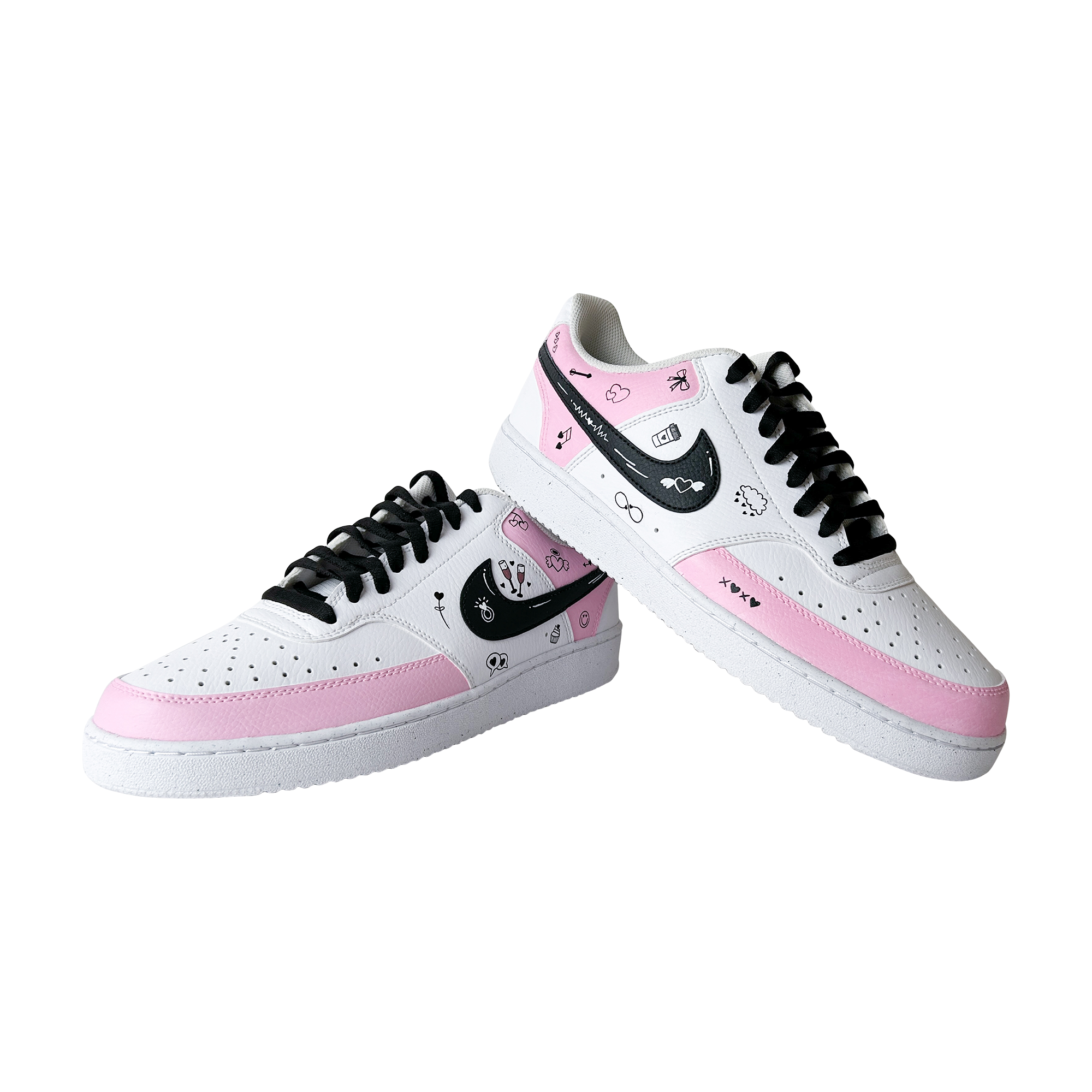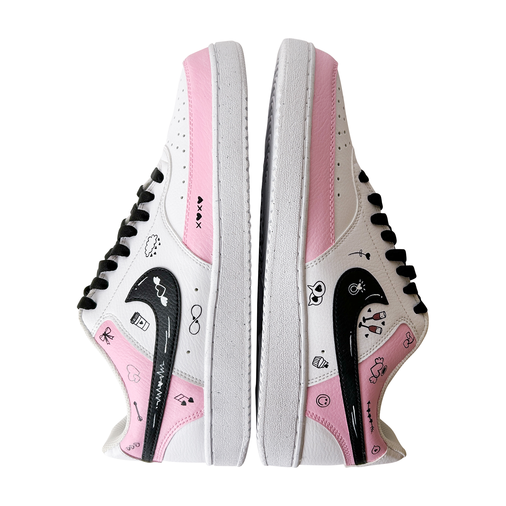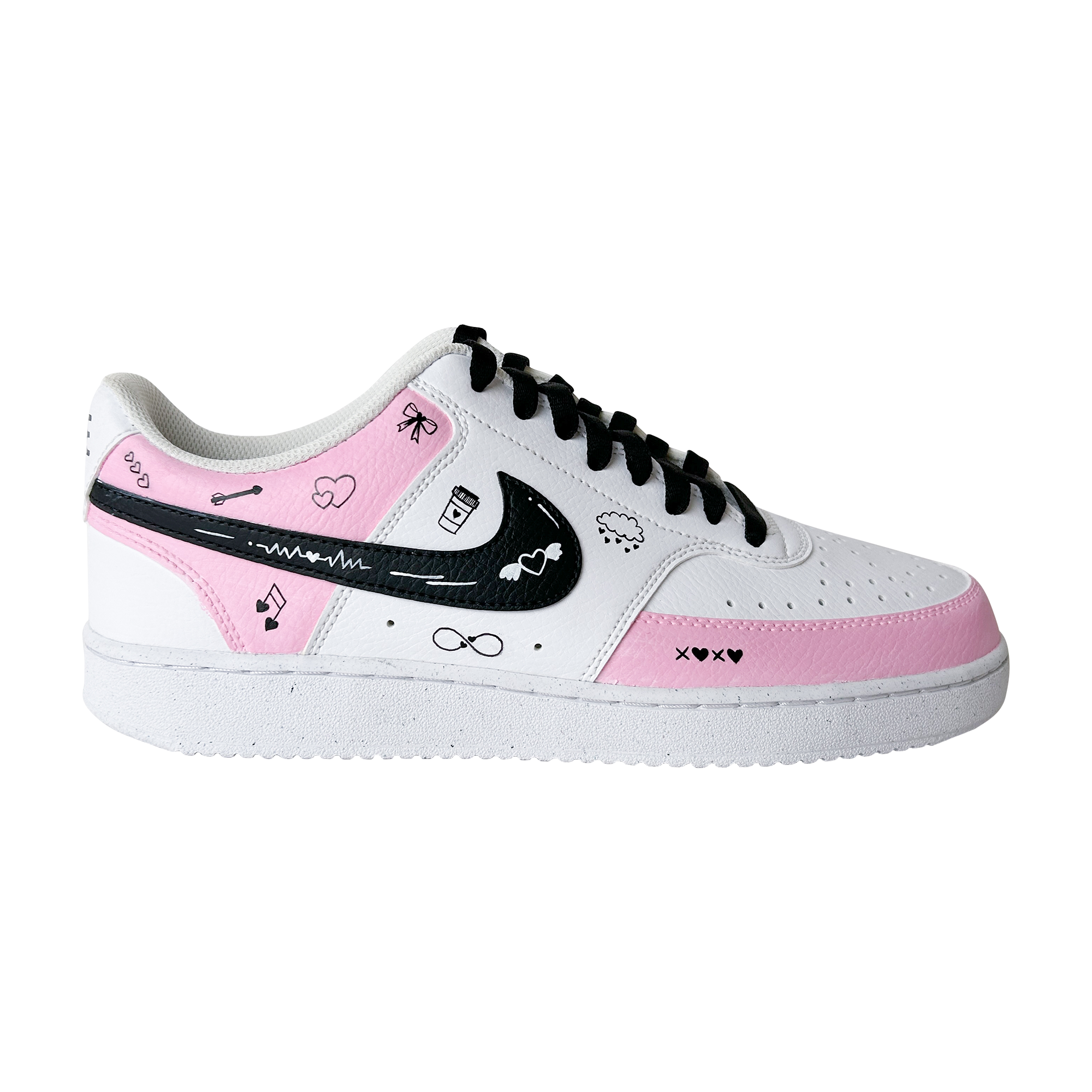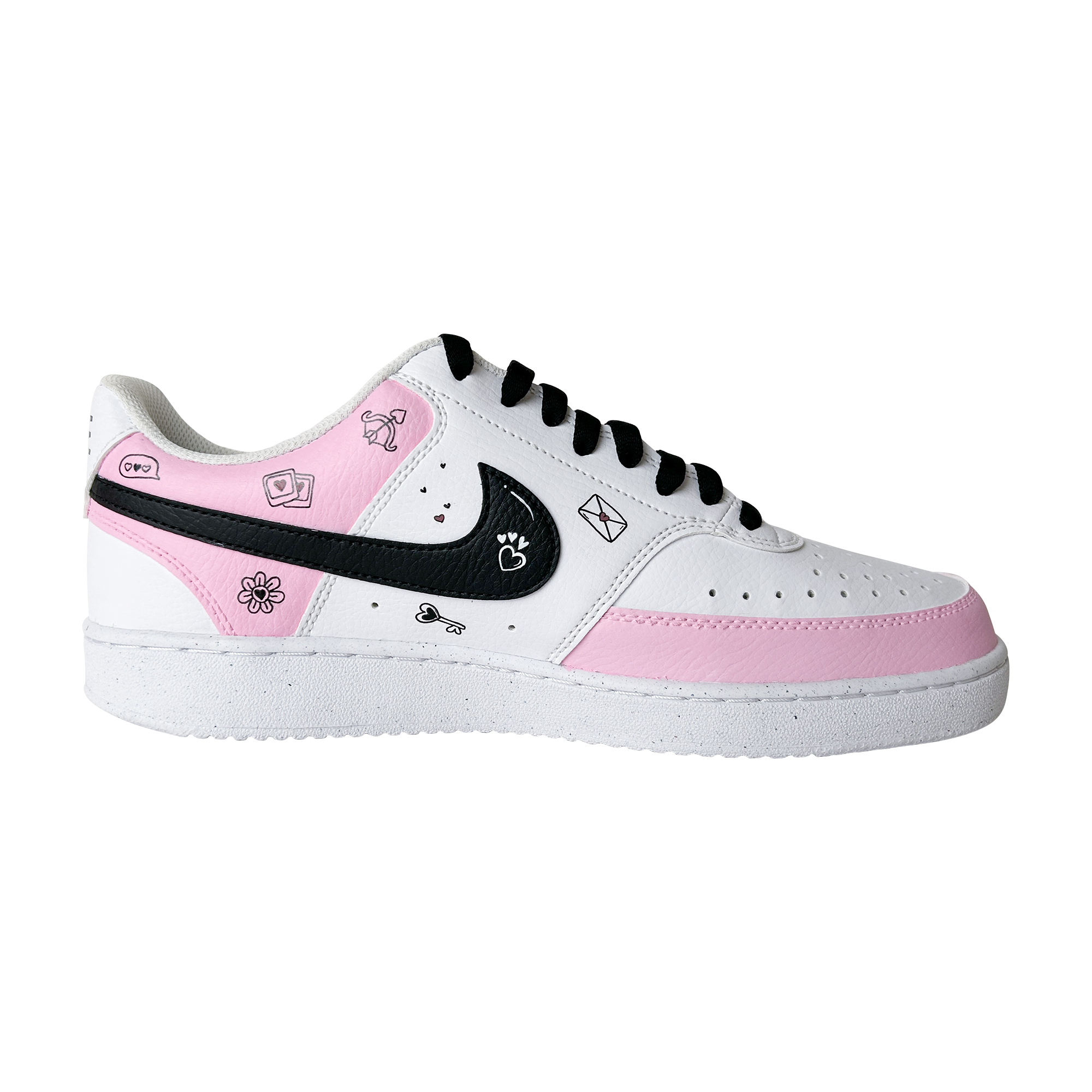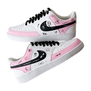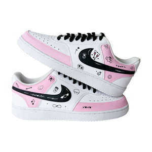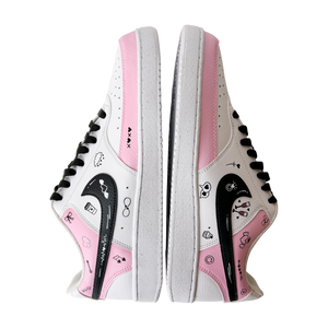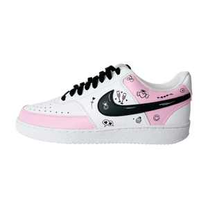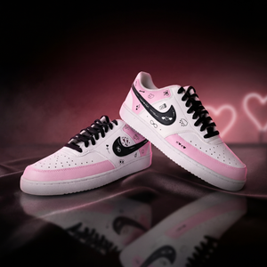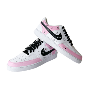 Hand-painted in soft blush tones with playful love doodles, this custom sneaker is made for girls who notice the little things — hearts, smiles, inside jokes, and vibes that feel personal. Every pair is painted by hand, meaning no two are ever exactly the same.