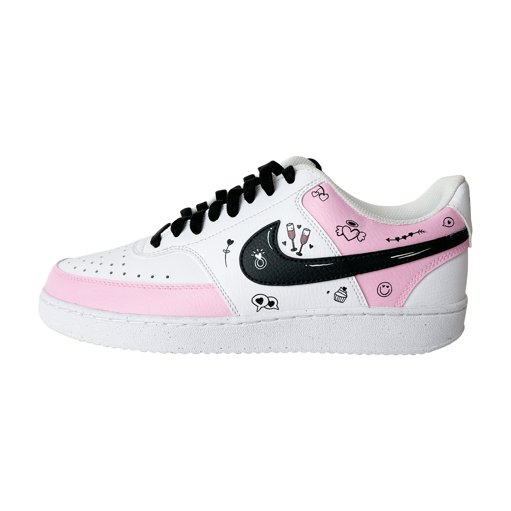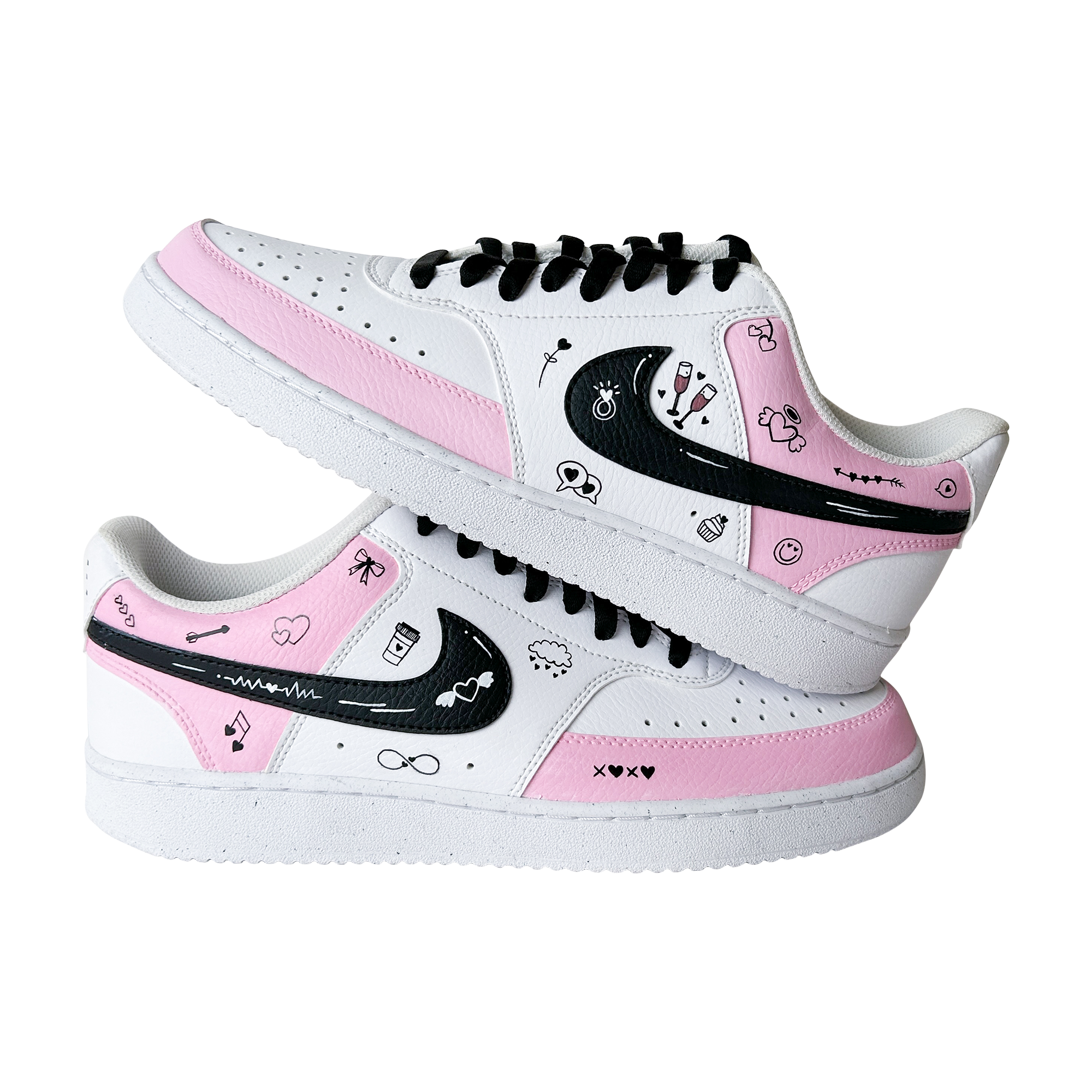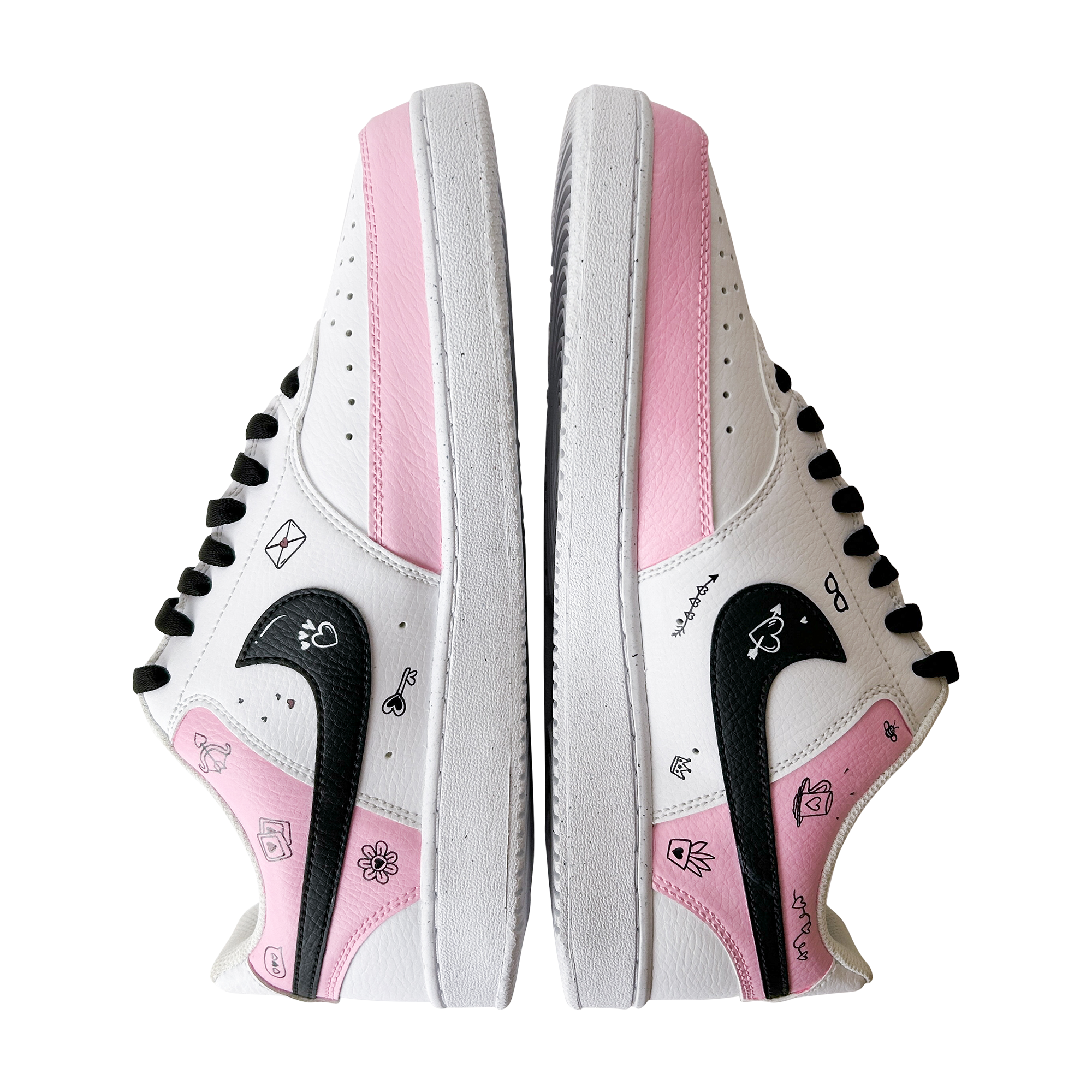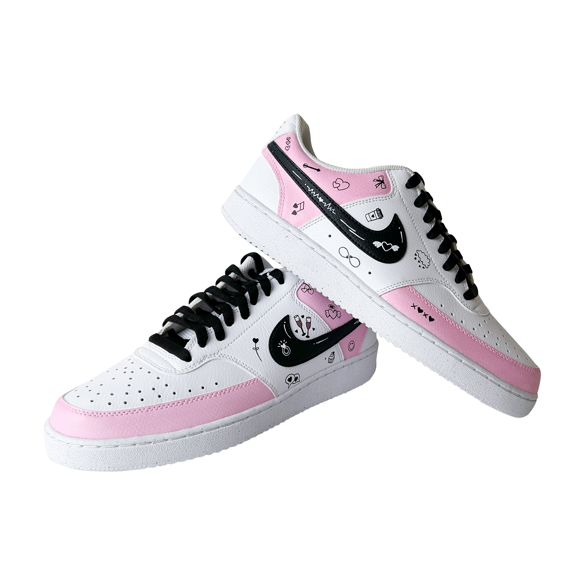 Hand-painted in soft blush tones with playful love doodles, this custom sneaker is made for girls who notice the little things — hearts, smiles, inside jokes, and vibes that feel personal. Every pair is painted by hand, meaning no two are ever exactly the same.